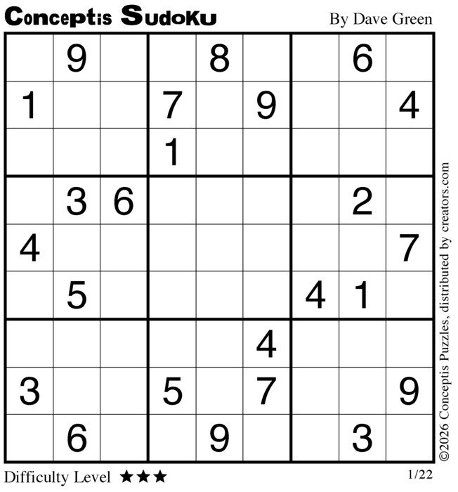Conceptis Classic Sudoku for Jan 22, 2026