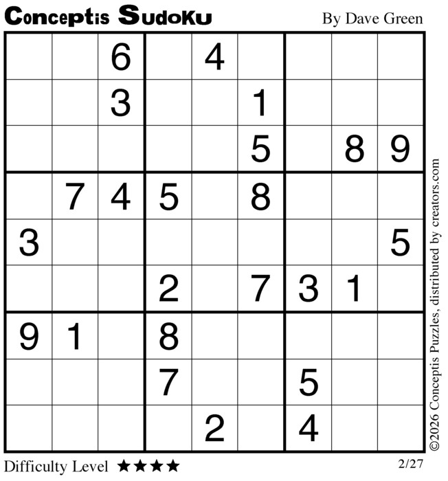 Conceptis Classic Sudoku for Feb 27, 2026