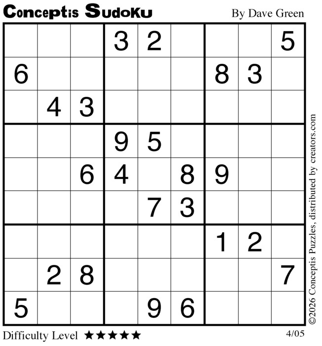Conceptis Classic Sudoku for Apr 05, 2026