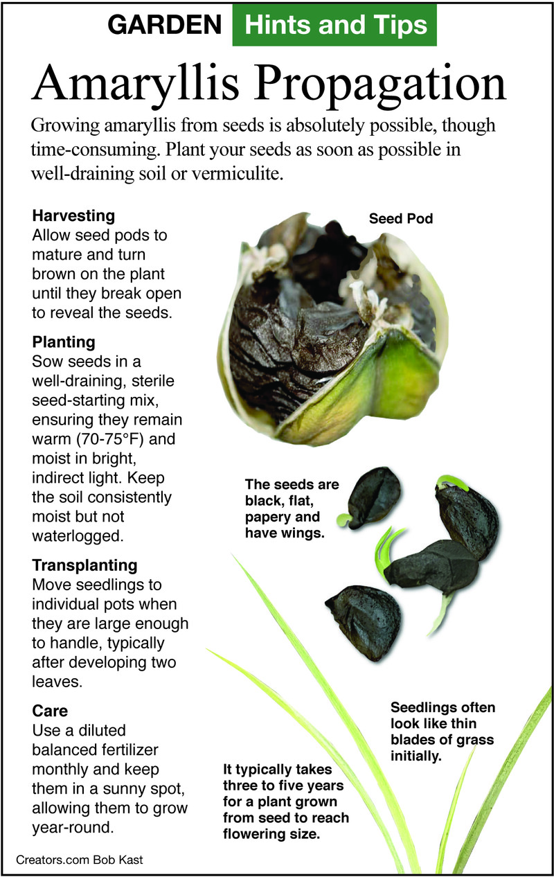 Q: About a month ago, I harvested two seed pods from a beautiful waxed Amaryllis that was done flowering. The pods are in the refrigerator. One opened and the seeds are black, so maybe they are not good. I prepared a few flowerpots with expanded shale and potting soil.