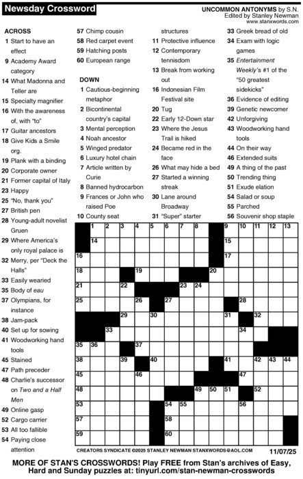 Newsday Crossword Puzzle for Nov 07, 2025